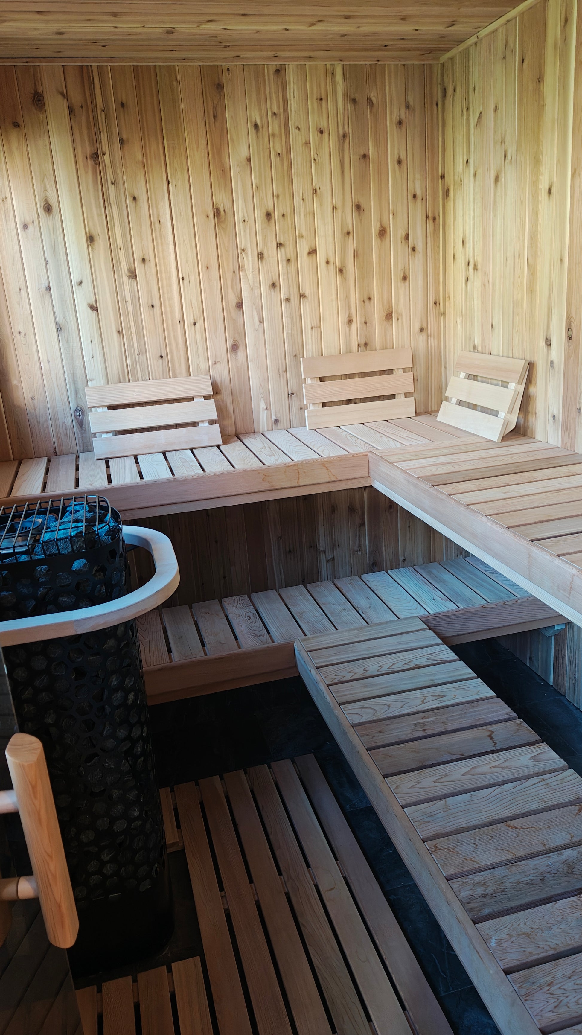The Pure Löyly 69 is the most versatile of the lineup, offering either the full 6×9 sauna experience designed to fit up to 8 people or optional change room and a change room access door into the sauna.
